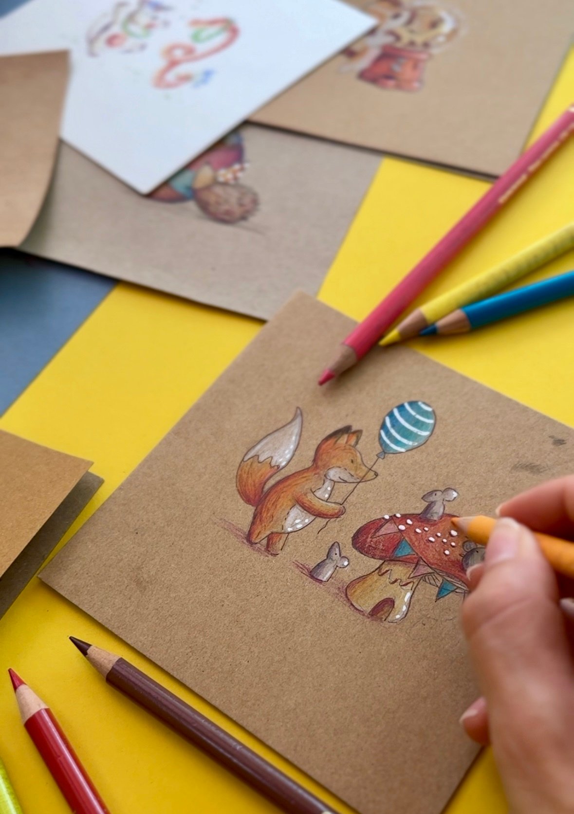 Jahoe! Alles wordt leuker met een beetje kleur! In deze les leer ik hoe je met kleurpotlood laagjes opbouwt, zodat je verdieping in je kleur aanbrengt. Aan het eind van de les hebben we het eerste scenario (de vos met de muisjes) helemaal afgerond.