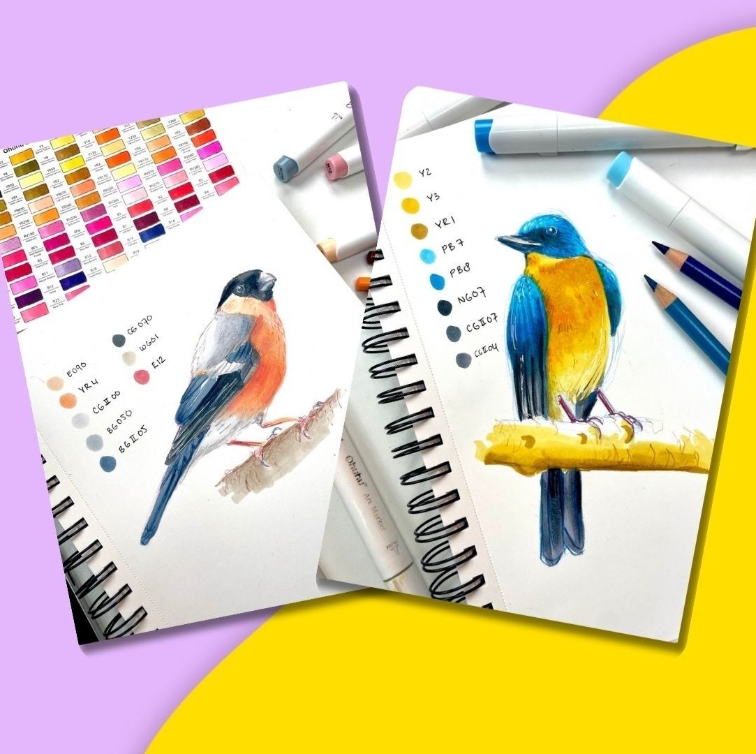 Voel je vrij! De cursus is in principe gericht op kleurpotlood, maar je mag zeker meedoen met andere materialen. Je leert tijdens de cursus namelijk ook de diertjes analyseren, en het schetsen met deze kennis is van toepassing op allerlei manieren van werken. Ook het herkennen en opzetten van de kleuren kun je met allerlei materialen doen, bijvoorbeeld alcoholmarkers, aquarel, of gouache.
