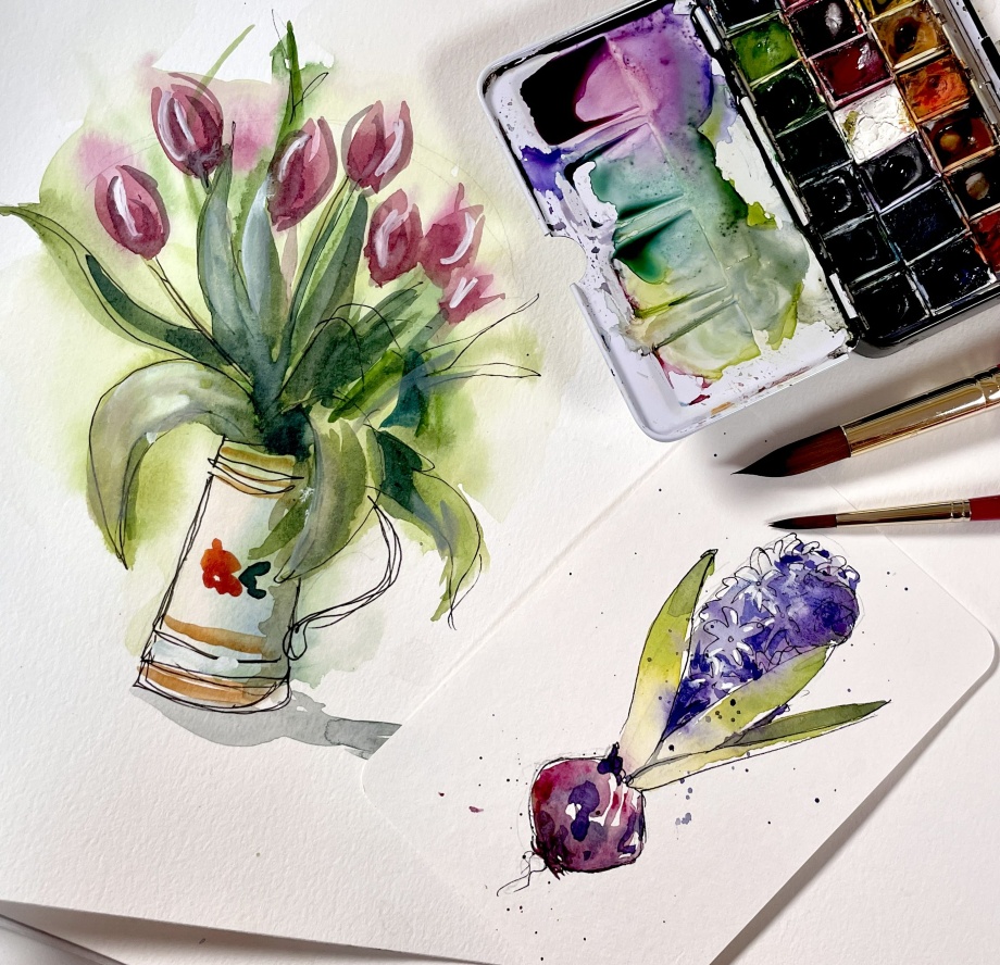 Een nog lossere manier van tekenen: eerst aquarel gebruiken!
