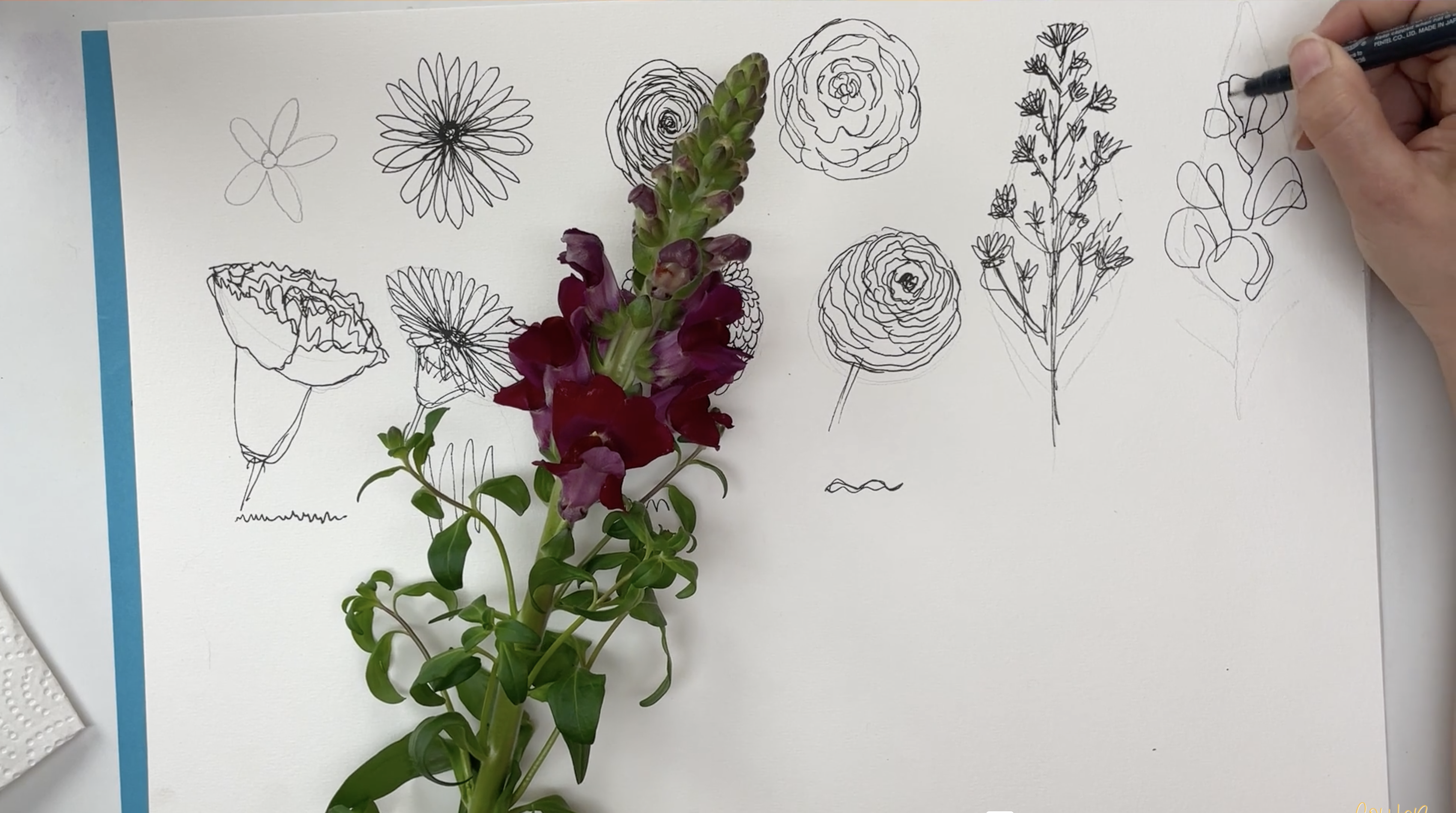 7 x bonusmateriaal: Het tekenproces van nog eens 7 bloemen en/of boeketten inzichtelijk gemaakt