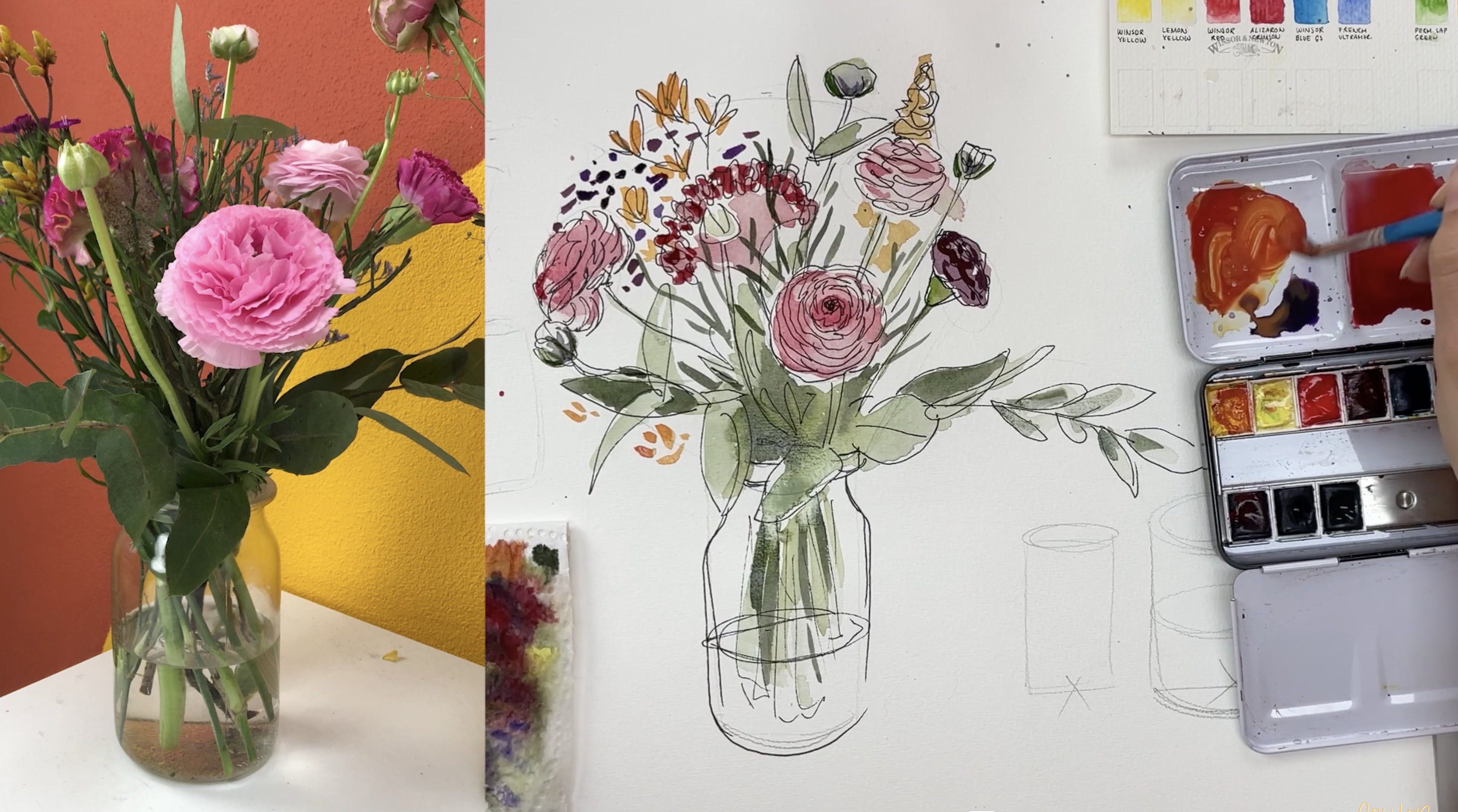 5 meetekenvideo’s: Ik laat je stap voor stap zien hoe je 2 prachtige boeketten schildert