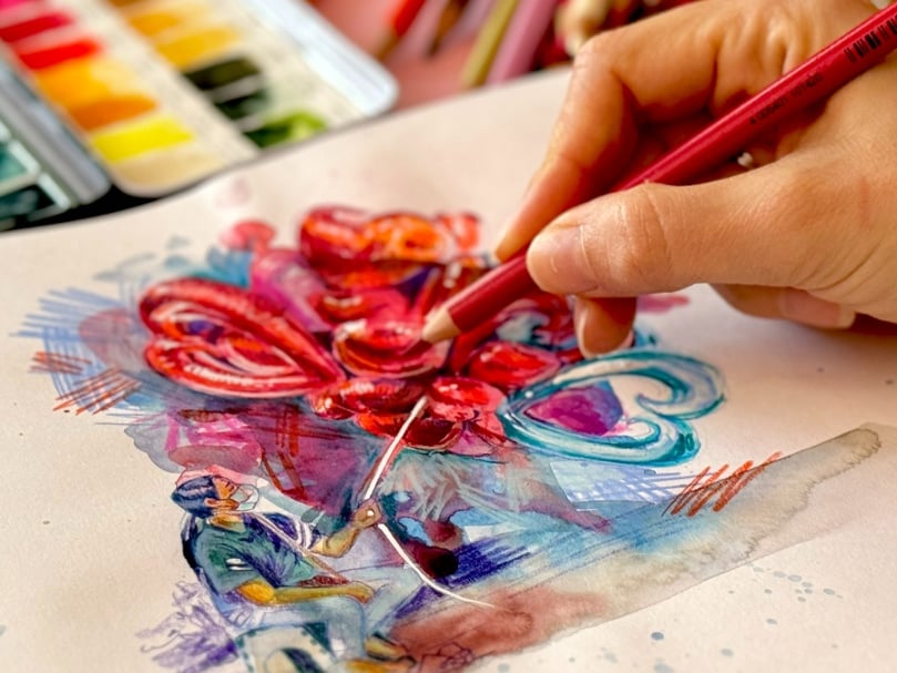 Kleurpotlood, Gouache & Aquarel