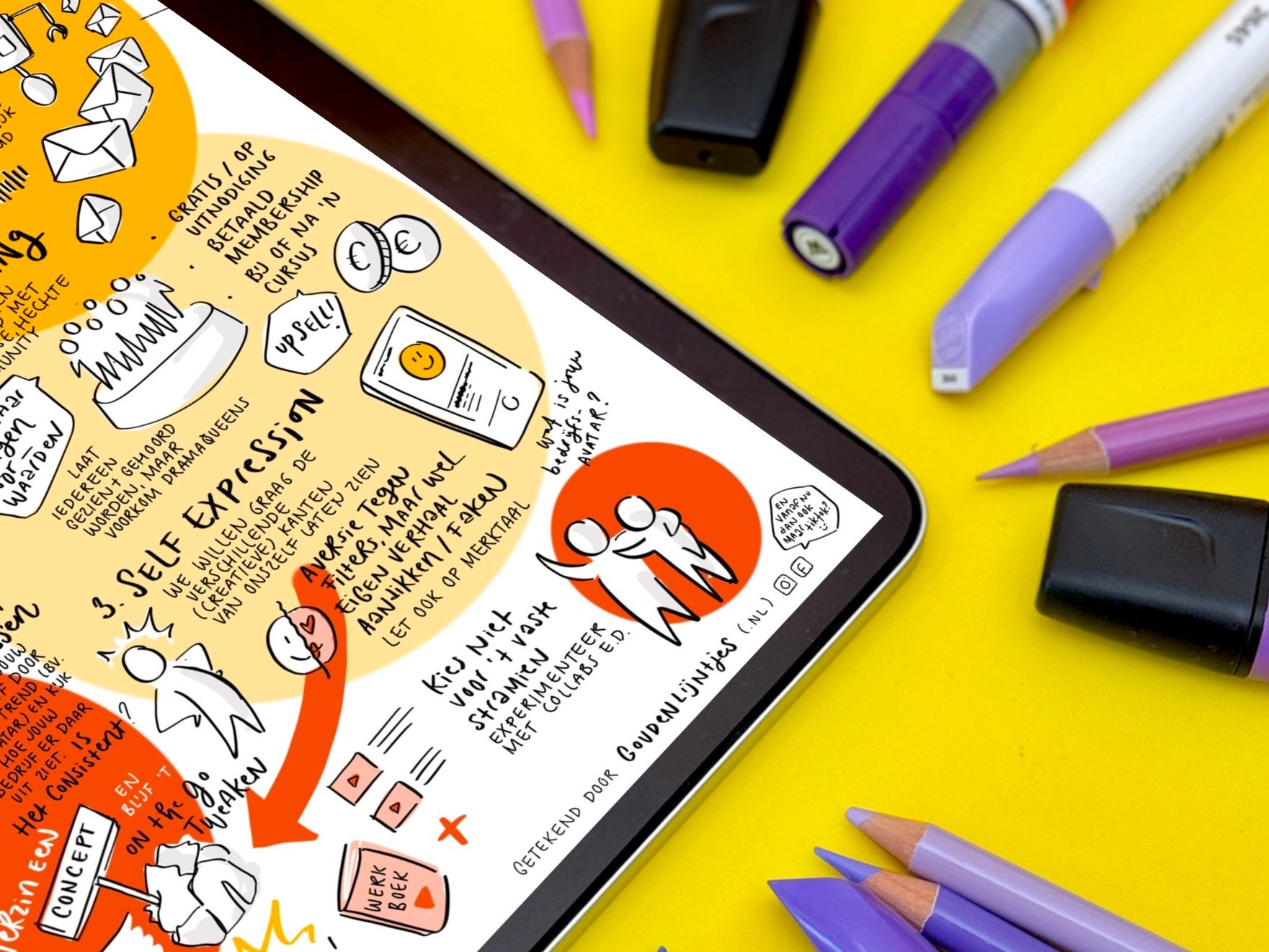 Visuele aantekeningen, van zakelijk tekenen tot journal doodles. Maak je notities en meetings effectiever én leuker. We gaan aan de slag met Procreate (of, als je wil, op papier) en bouwen aan jouw eigen visuele vocabulair! Perfect om zakelijk in te zetten, maar ook voor sketch journaling.