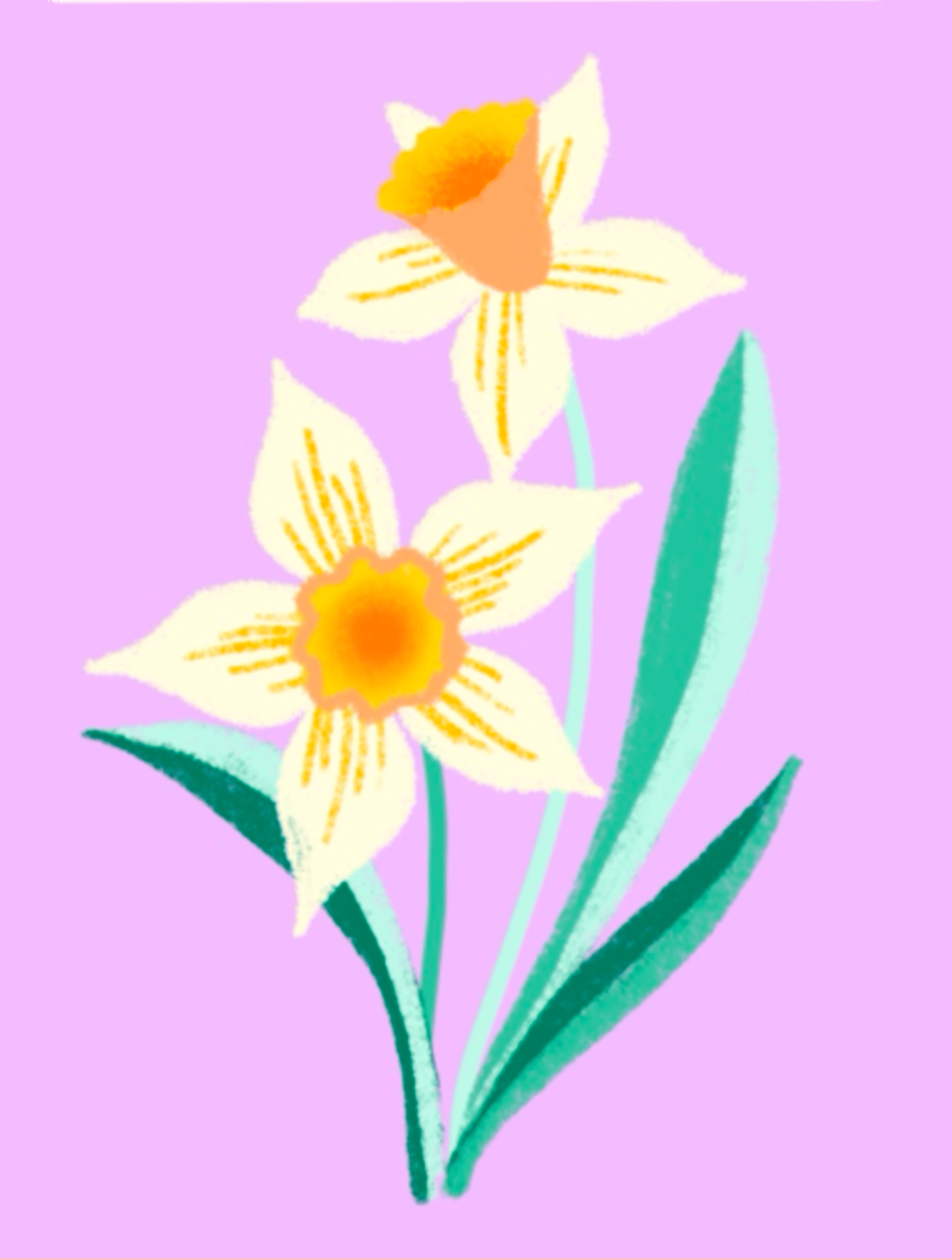 We starten simpel: een narcis tekenen om de basisprincipes van penselen en lagen te leren. Zo zie je direct hoe snel je iets vrolijks kunt creëren.