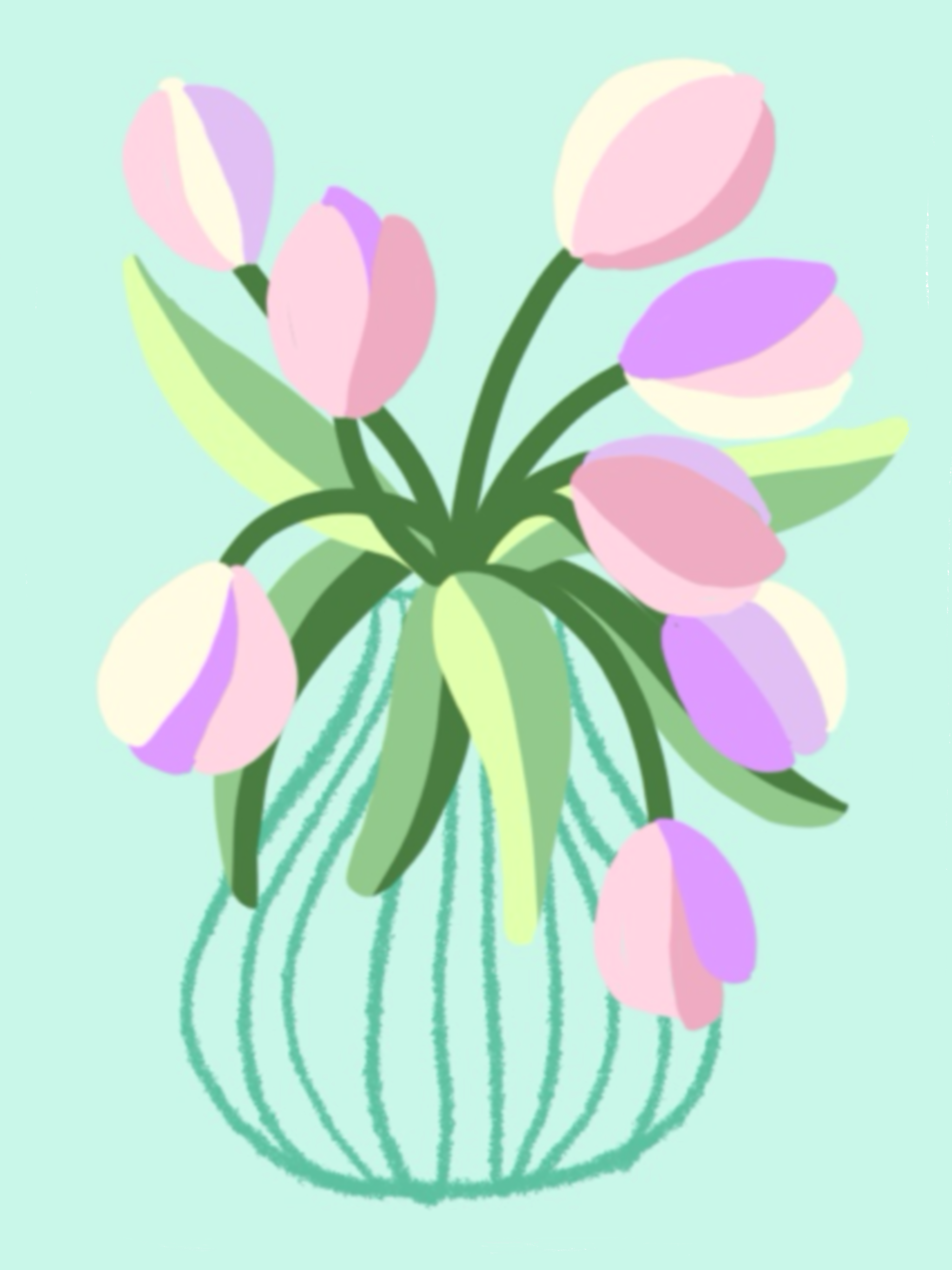 Geen nieuwe functies, maar wél lekker tekenen! Focus op het plezier terwijl je een schattig tulpenboeket opbouwt.