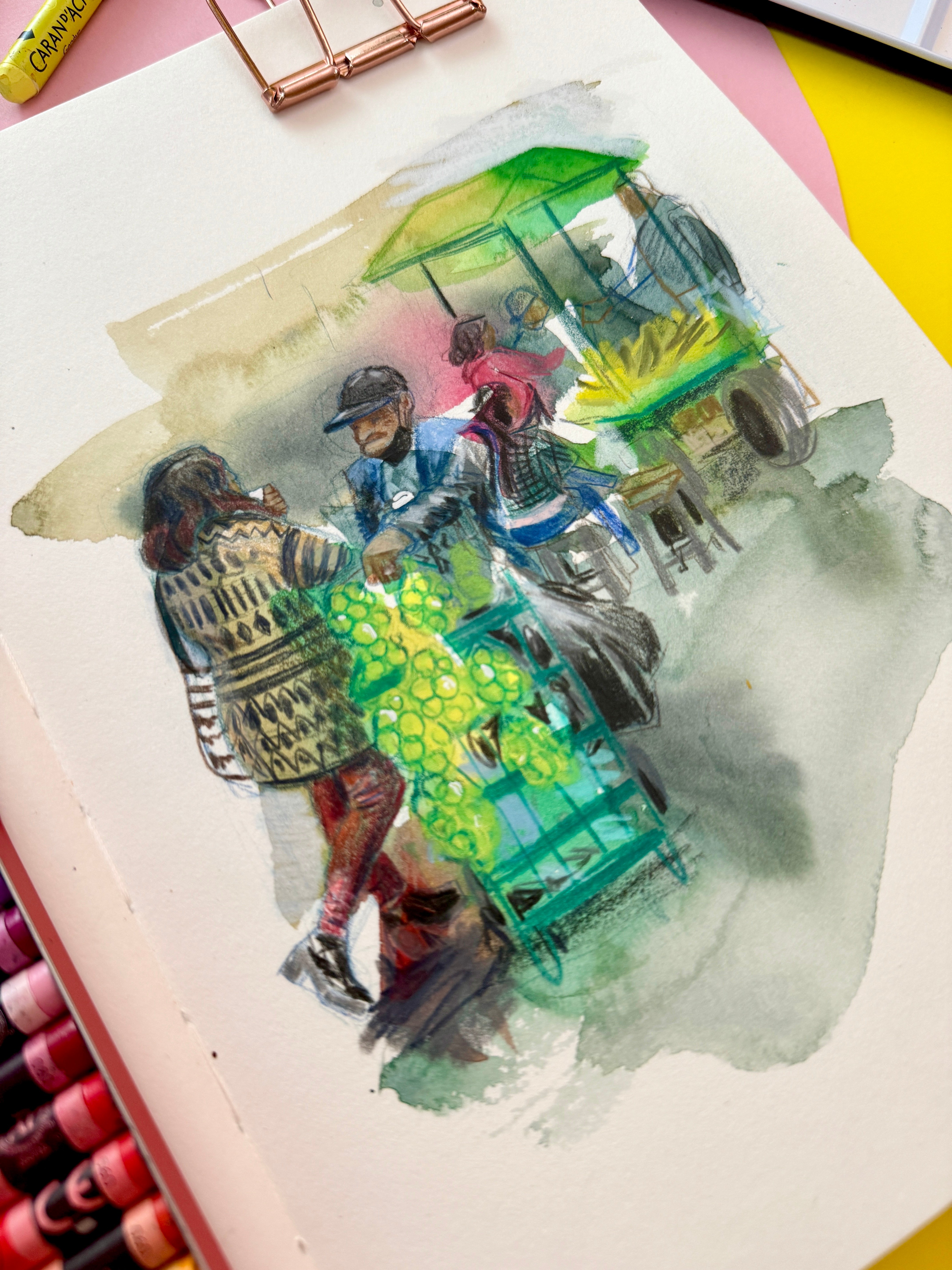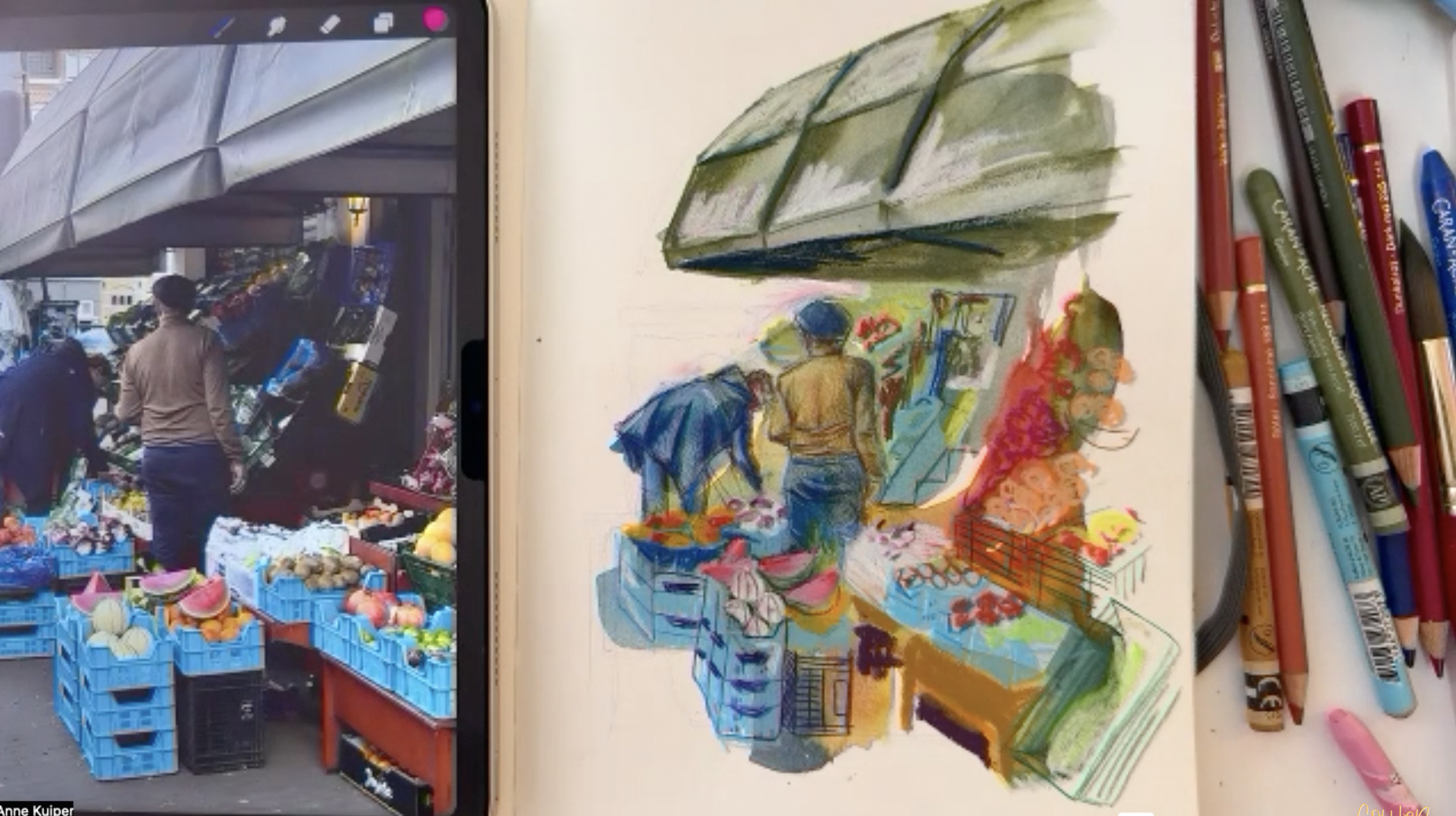 Ook Nederland heeft fijne straattaferelen! In deze bonusles, opname van een online livesessie, zie je de technieken toegepast op deze gezellige groenteboer uit Amsterdam.
