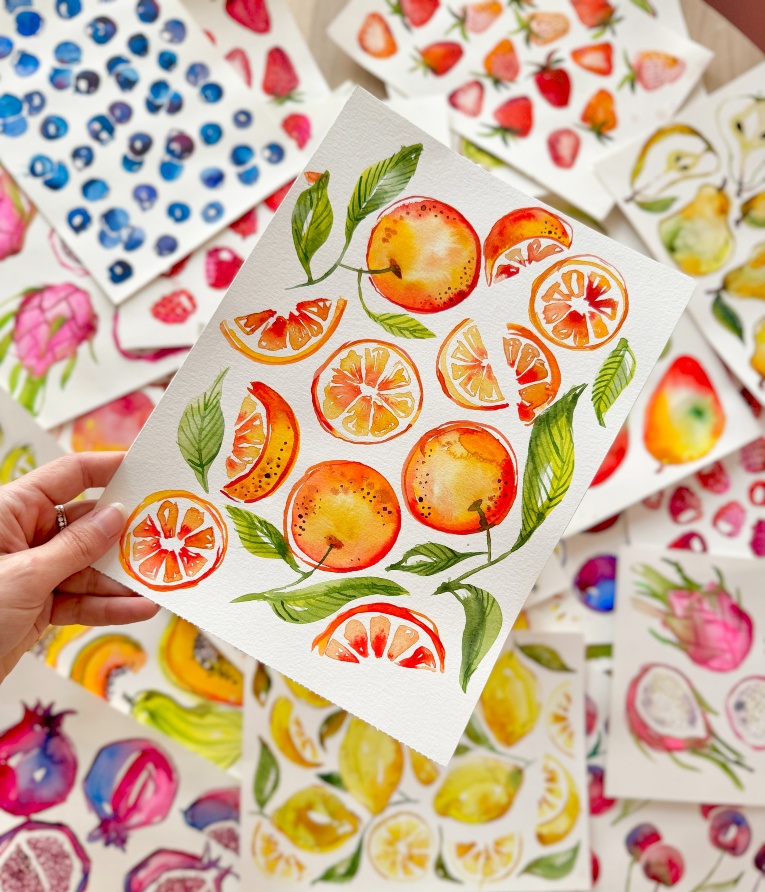 Pagina’s vol prachtig, sappig zomerfruit: Vol trots kun je je kleurrijke kunstwerken laten zien.