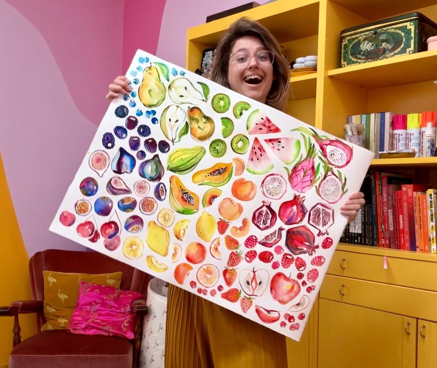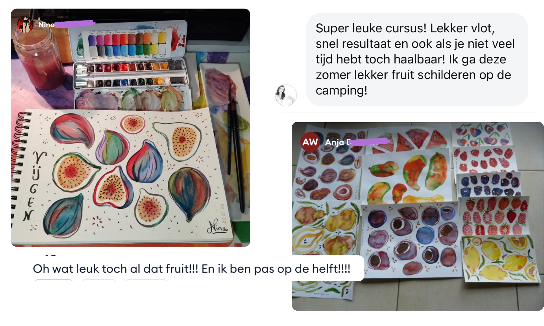 "Ik heb dankzij deze cursus enorme stappen gemaakt in mijn aquarel-vaardigheid - en fruit is zó leuk om te schilderen dat ik zomaar het idee heb dat ik deze zomer heel veel fruit in mijn journal zie verschijnen..."